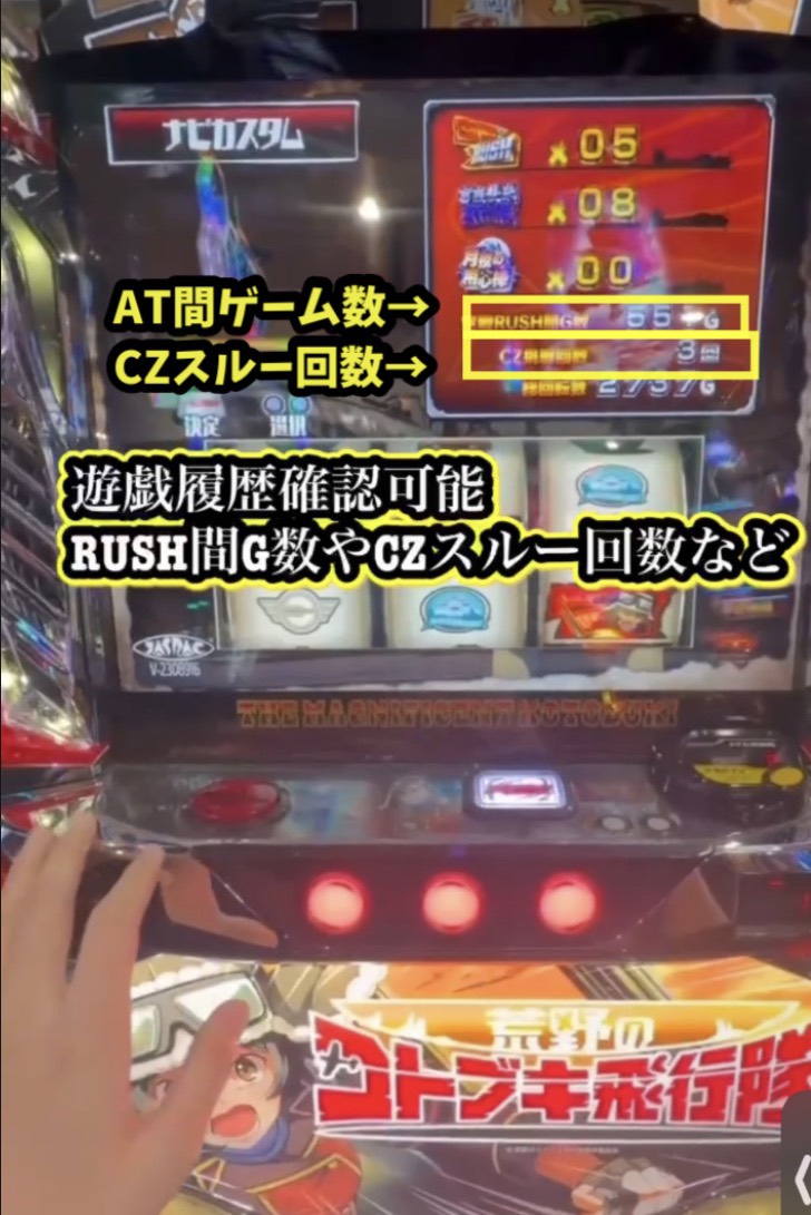 CZスルー回数、AT間ハマりG数を確認可能